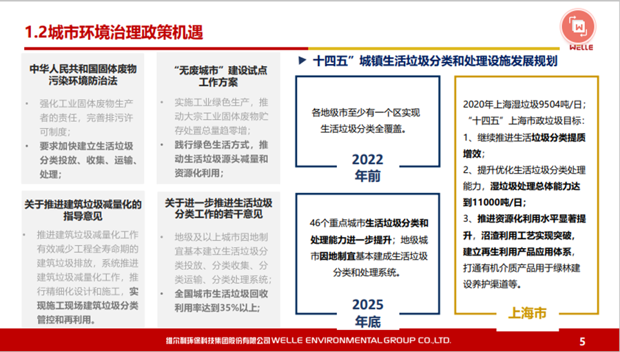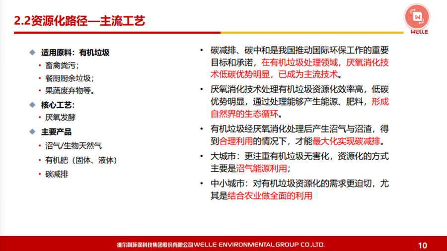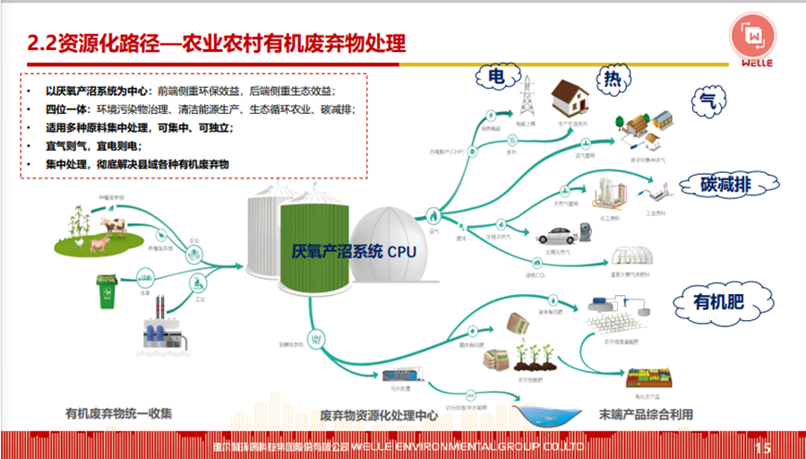 本文圍繞碳中和背景下的政策機遇、城鄉(xiāng)有機廢棄物資源化的的主要處理方法和路徑等內(nèi)容展開,同時對維爾利集團概況和發(fā)展歷程做了簡要回顧。 2021年10月20-21日,2021年中國沼氣學會學術(shù)年會暨中德沼氣合作論壇在南京舉行。作為2021年中國沼氣學會學術(shù)年會的承辦單位,維爾利環(huán)??萍技瘓F股份有限公司董事長李月中博士以《城鄉(xiāng)有機廢棄物資源化路徑探討》為主題,與大家一起探討了碳中和背景下城鄉(xiāng)有機廢棄物資源化的發(fā)展與未來。報告圍繞碳中和背景下的政策機遇、城鄉(xiāng)有機廢棄物資源化的的主要處理方法和路徑等內(nèi)容展開,同時對維爾利集團概況和發(fā)展歷程做了簡要回顧。本文根據(jù)其發(fā)言整理。▼維爾利環(huán)??萍技瘓F股份有限公司董事長 李月中各位領(lǐng)導、各位專家、各位同仁,大家上午好!今天有幸代表維爾利集團和大家做交流,作為會議的承辦方,也感謝中國沼氣學會、南京大學、德國沼氣協(xié)會給維爾利這個機會。維爾利作為專業(yè)的企業(yè),實際上歷史并不是很長,但是我們對沼氣和厭氧技術(shù)這塊有自己的獨到見解。作為一個商業(yè)機構(gòu),企業(yè)怎么能夠在競爭行業(yè)里生存和發(fā)展?在這里和大家做一些交流,和大家一起思考,同時希望在座的同仁能夠在這個行業(yè)相對比較困難的情況下抱團取暖。2020年9月,國家主席習近平在聯(lián)合國大會上提出“二氧化碳排放力爭于2030年前達到峰值,努力爭取2060年前實現(xiàn)碳中和”。2021年3月15日,習近平總書記主持召開中央財經(jīng)委員會第九次會議并發(fā)表重要講話強調(diào),要把碳達峰、碳中和納入生態(tài)文明建設(shè)整體布局,拿出抓鐵有痕的勁頭,如期實現(xiàn)2030年前碳達峰、2060年前碳中和的目標。從能源結(jié)構(gòu)上來說,有機垃圾資源化產(chǎn)生的生物質(zhì)能源在實現(xiàn)雙碳目標上具有獨特意義。這實際上也是倒推企業(yè)行業(yè)轉(zhuǎn)型。對大家來說,“碳達峰碳中和”既是一個挑戰(zhàn)也是一個機會。這里面包括了現(xiàn)在我們推出的對城市環(huán)境,對農(nóng)村農(nóng)業(yè)環(huán)境可能存在的機會,這些機會對環(huán)保產(chǎn)業(yè)來說,個人認為受到政策影響比較大。為什么德國2016年在農(nóng)業(yè)生物天然氣領(lǐng)域有下滑?是因為某些政策出現(xiàn)了不到位的情況,一些企業(yè)就不愿意去做。在碳達峰、碳減排的前提下,我們有很多的機會,但這個機會要真正落實,還是要國家從頂層設(shè)計到具體的政策到位,才能夠使這個行業(yè)有比較好的發(fā)展。在城市環(huán)境治理領(lǐng)域,城市有機廢棄物(垃圾量)非常大。上海實施垃圾分類以后,2020年上海濕垃圾的產(chǎn)生量是每天在9500-10000噸左右,也就是說1/3為濕垃圾。這對焚燒廠來說,是一個巨大的減負,但同時對處理能力也有了條件限制。我們深度參與了這方面工作,現(xiàn)在上海的處理能力大概為4000噸左右,意味著上海的濕垃圾處理能力還有60%在建,徹底實現(xiàn)垃圾分類的路還很遠。北京情況更為嚴重。原來北京只有幾個堆肥廠,原來只是三相做一點小的堆肥,如果真的要實現(xiàn)垃圾源頭分類,大概4、5千噸的垃圾處理設(shè)施要重新建設(shè)。在農(nóng)業(yè)農(nóng)村環(huán)境治理領(lǐng)域,包括農(nóng)產(chǎn)品加工這方面,整個市場規(guī)??赡芨蟆8魑磺拜叾家呀?jīng)做了一些介紹,我們是不是能夠全部實現(xiàn)資源化處理,是值得商榷的。對于不同的原料,我們應該怎么處理?作為企業(yè),我們推行起來還是有一定的難度。我們現(xiàn)在的這些大型的沼氣項目,它的源頭、原料、收益、收益成本,包括最終的產(chǎn)品出路,收集半徑到底多少是最合理的?實際上是需要根據(jù)不同有機廢棄物的種類以及最終產(chǎn)品的出路來規(guī)劃項目規(guī)模,而不是按照政策要求。比如一萬方的沼氣工程才稱得上大型沼氣項目,才有補貼,這樣的項目就不一定能夠真正地實現(xiàn)盈利。 下面大概講一講我們最近對城鄉(xiāng)有機廢棄物資源化的主要處理方法和路徑。