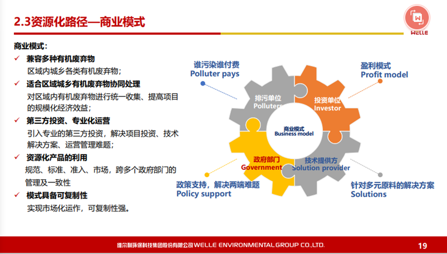 當前,有些城市對餐廚垃圾并不是分得特別清楚。如在紹興和上海,主要是餐廚協(xié)同處理。而在有些地方,比如荊門,餐廚垃圾和污泥協(xié)同處理,這樣使得厭氧反應和有機物都會大大加強,這也是我們這幾年積累的一些經(jīng)驗。在農(nóng)業(yè)農(nóng)村有機廢棄物處理方面,特別要講的是和杭能的合作。創(chuàng)始人蔡昌達先生是農(nóng)業(yè)沼氣領(lǐng)域的老人,深耕行業(yè)四十多年。維爾利與杭能深度合作后,幫助我們在這個行業(yè)里建立起了行業(yè)地位??偨Y(jié)起來,無論是在預處理技術(shù)還是厭氧處理,沼氣儲存和利用,以及深度延伸的產(chǎn)品開發(fā),都有新的技術(shù)或者產(chǎn)品。尤其是這幾年,我們通過數(shù)字化提升了整個設(shè)計、裝備制造、運維的管理能力,有機會也可以和大家做深度交流。僅僅看沼氣,大家還是覺得收益不能保證,尤其算賬不一定能算得過來。即使現(xiàn)在有碳減排的收益,但是要真正形成交易,變成真金白銀也不是那么容易的事。對此我們也做了新的探索,比如對于有機固渣、食用蛋白,或者是做一些食用蛋白的研究,這塊是值得探討的。中國在飼料蛋白這塊缺少量是非常大的,所以有一些機會。但是真的規(guī)?;\行以后,食用蛋白的標準是不是能夠作為大規(guī)模飼料的原料,還需要做一些探討。目前,我們和國外一些有規(guī)模的機構(gòu)也在進行一些合作,在國內(nèi)做現(xiàn)代化大規(guī)模養(yǎng)殖的示范項目。其他的一些應用,如肥料化的應用也在做探討,甚至我們在做農(nóng)業(yè)示范園區(qū)的實驗,更多是希望在最終產(chǎn)品的出路上做一些嘗試。在商業(yè)模式上,我們企業(yè)也需要做一些思考。無論是和投資機構(gòu)、投資人,或者是排污企業(yè)、政府、技術(shù)設(shè)備供應商等,我們怎么通過共贏的模式創(chuàng)新,能夠形成一些深度的商業(yè)合作?這塊我們也在做不同的思考。環(huán)境保護涉及到一些新的能源,結(jié)合鄉(xiāng)村振興,一、二、三生態(tài)聯(lián)動,也給我們這個行業(yè)帶來非常多的機會,需要企業(yè)或者在座的專家同仁一起探討,共同發(fā)聲,才能夠把行業(yè)做得更好。在上海的松江、老港、金山、嘉定等濕垃圾處理項目,我們都作為技術(shù)設(shè)備供應商EPC深度參與。另外,像維爾利紹興市循環(huán)生態(tài)產(chǎn)業(yè)園(一期)PPP項目,最近可能廚余還要擴大四倍。這塊的產(chǎn)品是以沼氣為主,已經(jīng)做了生產(chǎn)線,但是還沒有進入商業(yè)運行。這些項目相對來說還沒有真正帶有垃圾分類的本質(zhì)。對于大城市現(xiàn)在還是以無害化為主,如果未來要到更好的資源化,跟農(nóng)業(yè)結(jié)合的可能更有前景。整個產(chǎn)業(yè)園餐廚廚余垃圾有天然氣的回收,整個項目協(xié)同了以后效益還是比較好的。典型案例—農(nóng)業(yè)有機廢棄物資源化在農(nóng)業(yè)項目方面,我們在梁家河農(nóng)業(yè)部推了“果沼畜”,對促進高品質(zhì)農(nóng)業(yè)發(fā)展有非常好的作用。另外,我們在“黑龍江德潤項目”做了以秸稈為原料的大型沼氣項目,山東民和牧業(yè)(二期)4.2萬方生物天然氣項目,包括雞糞、秸稈等等項目,這些項目在國內(nèi)都有比較好的示范作用。典型案例—城鄉(xiāng)混合原料有機廢棄物資源化我們在徐州國新做了生物天然氣項目,原料有秸稈、餐廚垃圾、糞便等等,這種項目要協(xié)同處理,未來競爭力相對比較強,包括原料的成本、出資費用等都是有保障的,能夠把環(huán)保和能源化利用進行深度結(jié)合。中廣核衡水混合原料10萬方生物天然氣項目等,都在國內(nèi)有比較好的示范作用。王凱軍老師講到,國家發(fā)改委支持了64個大型規(guī)?;锶細庠圏c項目,我們總共做了22個。這些項目的建設(shè)問題不是很大,但是在運行方面,尤其是如何能夠盈利地運行,確實是有些問題的。我們后來做 的“廣西武鳴”項目,工業(yè)原料原來做的是木薯花,后期原料供應不足,只好通過買其他原料來解決。從運營上來說,需要非常多的資源調(diào)配,最終有可能給一些政策,能夠把餐廚、廚余垃圾建設(shè)起來,項目才能盤活。類似這樣的項目,我們希望能夠在各位的支持下能夠運行起來。起碼自己建設(shè)的一些項目能夠運行起來,真正地做成示范標桿。實際上,項目原料是多元的。但是從投資以及收益來說,復盤以后算下來,如果后面增加碳減排的設(shè)計,這種項目收益就非常好?,F(xiàn)在還不能直接作為經(jīng)濟補償,但是起碼現(xiàn)在收益可以達到6%,也可以到8%或者10%。這種項目未來是有預期的,各地環(huán)境集團會大面積地來推廣。我們認為在央企、國企的帶領(lǐng)下,這樣的項目既能夠承擔國家責任,又能夠把產(chǎn)業(yè)帶動起來,具有很好的示范作用。下面再分享一個案例,我們和優(yōu)然做了幾個項目,現(xiàn)在奶牛行業(yè)的牛糞、沼渣,原來大部分都是用耗氧堆肥做處理,現(xiàn)在通過厭氧以后,沼渣進一步做回收,收益也還可以,現(xiàn)在也有深度的合作,項目生產(chǎn)包做起來以后,能夠做一個3A的平臺。總的來說,這些項目要實現(xiàn)盈利,確實相對比較艱苦。但是我們相信,隨著國家推綠色、綠電、綠氣,或者碳減排政策逐步出臺,這個行業(yè)會越來越好。