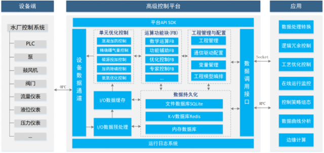 用戶通過(guò)在控制平臺(tái)上新建工程項(xiàng)目,定義采集變量、按需選取功能運(yùn)算塊(FB)或定義程序腳本(Script),配置各項(xiàng)運(yùn)行參數(shù)等一系列工程建模過(guò)程,實(shí)現(xiàn)水廠的邏輯冗余控制、工藝優(yōu)化控制、控制回路監(jiān)視、自控性能分析、數(shù)據(jù)趨勢(shì)分析和全廠閉環(huán)控制等功能。