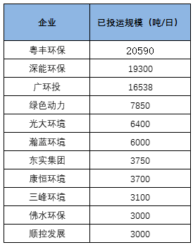 49350噸/日項目在建、待建,廣環(huán)投、深能環(huán)保領(lǐng)跑