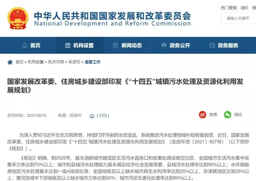 2、安排中央預算內投資支持污水污泥處理項目建設。2021年5月,發(fā)展改革委印發(fā)《污染治理和節(jié)能減碳中央預算內投資專項管理辦法》,繼續(xù)支持污水處理等項目建設。