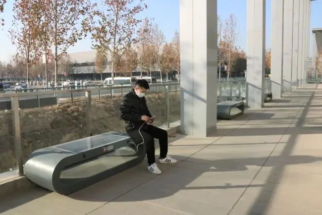 這可不是普通的座椅。椅子坐的那個面就是光伏板,可以實(shí)現(xiàn)手機(jī)無線充電或者有線充電。