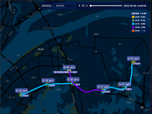 監(jiān)測生產運行數(shù)據(jù),結合深隧防淤積模型和算法預測深隧淤積分布情況,自動預警管道淤積情形,提醒運營人員及時進行風險化解。