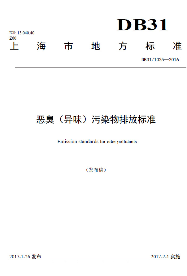 上海市地方污染物排放標(biāo)準(zhǔn)《惡臭(異味)污染物排放標(biāo)準(zhǔn)》(DB 31/1025-2016)