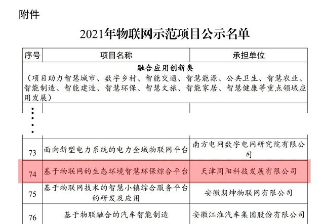 近日,工信部發(fā)布了2021年物聯(lián)網(wǎng)示范項目名單,同陽科技的《基于物聯(lián)網(wǎng)的生態(tài)環(huán)境智慧環(huán)保綜合平臺》強勢入圍。