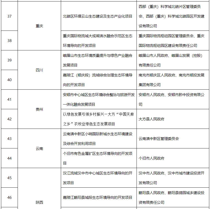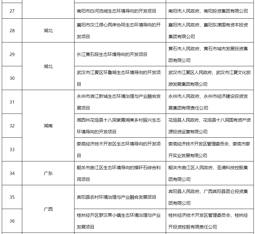 同時(shí),對(duì)于第二批試點(diǎn),3部門還提出了4點(diǎn)要求。?1、認(rèn)真貫徹國家有關(guān)生態(tài)環(huán)境治理模式創(chuàng)新和環(huán)保產(chǎn)業(yè)發(fā)展要求在試點(diǎn)工作開展過程中積極探索,創(chuàng)新生態(tài)環(huán)境治理項(xiàng)目組織實(shí)施方式,促進(jìn)生態(tài)環(huán)境高水平保護(hù)和區(qū)域經(jīng)濟(jì)高質(zhì)量發(fā)展。省級(jí)生態(tài)環(huán)境、發(fā)展改革部門等試點(diǎn)推進(jìn)單位加強(qiáng)對(duì)試點(diǎn)工作的督促指導(dǎo),對(duì)試點(diǎn)工作中發(fā)現(xiàn)的問題要及時(shí)予以糾正,推進(jìn)試點(diǎn)工作規(guī)范實(shí)施。國家開發(fā)銀行有關(guān)分行對(duì)符合條件的試點(diǎn)項(xiàng)目,按照精準(zhǔn)施策、市場化運(yùn)作和風(fēng)險(xiǎn)可控原則,發(fā)揮開發(fā)性金融大額中長期資金優(yōu)勢,統(tǒng)籌考慮經(jīng)濟(jì)效益和環(huán)境效益,在資源配置上予以傾斜,加大支持力度。也就是說,省級(jí)環(huán)保部門和發(fā)改部門要加強(qiáng)指導(dǎo)監(jiān)督,而國開行有關(guān)分行則要在資源分配上予以傾斜,加大支持。試點(diǎn)實(shí)施單位是試點(diǎn)工作的責(zé)任主體,要嚴(yán)格履行試點(diǎn)實(shí)施承諾,不以試點(diǎn)名義突破現(xiàn)有法律法規(guī)政策等要求,嚴(yán)格落實(shí)招投標(biāo)、政府采購、投融資、土地、資源開發(fā)、空間管控、資產(chǎn)處置等各項(xiàng)法規(guī)政策,不以任何形式增加地方政府隱性債務(wù)。采用合法合規(guī)方式選擇具備較強(qiáng)產(chǎn)業(yè)投資運(yùn)營能力的項(xiàng)目實(shí)施主體,由一個(gè)主體一體化實(shí)施,確保產(chǎn)業(yè)開發(fā)項(xiàng)目持續(xù)運(yùn)營。這一條,是有關(guān)風(fēng)險(xiǎn)防范的條款,告知試點(diǎn)實(shí)施單位要注意控制政府隱性債務(wù),依法開展試點(diǎn)。?3、強(qiáng)化項(xiàng)目收益內(nèi)部反哺機(jī)制試點(diǎn)實(shí)施單位切實(shí)加強(qiáng)公益性生態(tài)環(huán)境治理項(xiàng)目與相關(guān)經(jīng)營性產(chǎn)業(yè)開發(fā)項(xiàng)目一體化融合實(shí)施。在項(xiàng)目邊界范圍內(nèi)實(shí)現(xiàn)產(chǎn)業(yè)開發(fā)項(xiàng)目對(duì)生態(tài)環(huán)境治理項(xiàng)目建設(shè)與運(yùn)營的持續(xù)性收益反哺。實(shí)施中可適當(dāng)優(yōu)化試點(diǎn)依托項(xiàng)目,加強(qiáng)產(chǎn)業(yè)收益對(duì)生態(tài)環(huán)境治理的反哺力度,減少政府資金投入,力爭實(shí)現(xiàn)政府資金“零投入”。大家知道,EOD項(xiàng)目都是“肥瘦搭配”,這一條就是要求“肥”項(xiàng)目要加強(qiáng)反哺“瘦”項(xiàng)目,從而減少政府資金投入,最好是實(shí)現(xiàn)政府資金“零投入”,應(yīng)該說這才是EOD模式的“初心”。試點(diǎn)實(shí)施單位加強(qiáng)統(tǒng)籌,及時(shí)總結(jié)經(jīng)驗(yàn)做法,探索形成可復(fù)制、可推廣的生態(tài)環(huán)境治理創(chuàng)新模式。按照《關(guān)于開展生態(tài)環(huán)境導(dǎo)向的開發(fā)模式試點(diǎn)定期調(diào)度的通知》要求,試點(diǎn)實(shí)施單位于每季度首月10日前將試點(diǎn)項(xiàng)目季度實(shí)施進(jìn)度情況表報(bào)送生態(tài)環(huán)境部科技與財(cái)務(wù)司。試點(diǎn)期內(nèi)每年12月底前將年度進(jìn)展情況報(bào)告報(bào)請(qǐng)省級(jí)生態(tài)環(huán)境、發(fā)展改革部門審查后,由兩部門上報(bào)生態(tài)環(huán)境部、國家發(fā)展改革委,抄報(bào)國家開發(fā)銀行。既然是試點(diǎn),最重要的任務(wù)肯定就是摸索經(jīng)驗(yàn)、探索模式,從而有利于以后的推廣,這一條就是關(guān)于這方面的規(guī)定。總的來看,第二批EOD模式試點(diǎn),國家的要求并不算很多,還是以探索為主,希望能夠形成可復(fù)制、可推廣的經(jīng)驗(yàn)。所以入選項(xiàng)目也可以盡可能地放開手腳,大膽試驗(yàn)。第一批試點(diǎn)授信額度達(dá)644億元