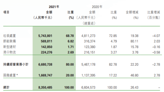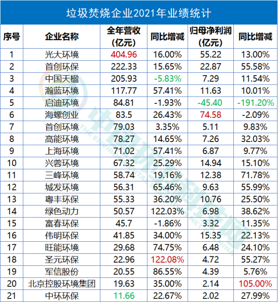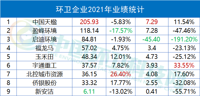 工程建設(shè)方面,建成投運(yùn)項(xiàng)目91個(gè),建成完工項(xiàng)目8個(gè);新開(kāi)工項(xiàng)目51個(gè),完工并交付的環(huán)境修復(fù)服務(wù)6個(gè)、垃圾分類(lèi)服務(wù)1個(gè)、EMC項(xiàng)目4個(gè)以及EPC項(xiàng)目9個(gè)。2021年,光大環(huán)境累計(jì)處理生活垃圾43,452,000噸,處理危廢及固廢269,000噸,提供綠色電力22,271,602,000千瓦時(shí),可供18,559,000個(gè)家庭一年使用,相當(dāng)于節(jié)約標(biāo)煤8,909,000噸,減少二氧化碳排放20,211,000噸。同期處理污水1,698,710,000立方米,處理垃圾發(fā)電廠滲濾液9,635,000立方米,減少COD排放740,000噸。在凈利榜中,海螺創(chuàng)業(yè)以74.58億元的歸母凈利潤(rùn)雄踞榜首。海螺創(chuàng)業(yè),2013年12月在香港聯(lián)合交易所主板上市(股票代碼:00586.HK),是一家提供節(jié)能環(huán)保“一攬子”解決方案的大型企業(yè)集團(tuán),產(chǎn)業(yè)涉及節(jié)能、環(huán)保、新型建材、港口物流四大類(lèi),業(yè)務(wù)涵蓋生活垃圾處理、固廢危廢處置、黑臭水體治理、新型建材、港口貿(mào)易、余熱發(fā)電、高效節(jié)能立磨等。細(xì)分業(yè)務(wù)板塊,2021年在垃圾處置領(lǐng)域,海螺創(chuàng)業(yè)營(yíng)收57.44億元,同比增長(zhǎng)19.38%,占全部營(yíng)收比重為68.78%。▲ 海螺創(chuàng)業(yè)分業(yè)務(wù)收入年報(bào)披露,2021年,海螺創(chuàng)業(yè)垃圾發(fā)電業(yè)務(wù)板塊共接收生活垃圾約540萬(wàn)噸,處置生活垃圾約456萬(wàn)噸,上網(wǎng)電量約16.65億度,按照入爐量計(jì)算的平均噸上網(wǎng)電量約為365度,較去年同比提高19度。目前,海螺創(chuàng)業(yè)已成功取得貴州清鎮(zhèn)、重慶巫山、吉林洮南、河北圍場(chǎng)、越南春山等13個(gè)項(xiàng)目以及并購(gòu)的10個(gè)項(xiàng)目,共計(jì)23個(gè)焚燒發(fā)電項(xiàng)目,涉及產(chǎn)能規(guī)模約567萬(wàn)噸/年。3月30日,海螺創(chuàng)業(yè)分拆海螺環(huán)保成功在香港聯(lián)合交易所主板上市。日前,又宣布擬分拆海創(chuàng)綠能于上海證券交易所獨(dú)立上市。在大部分上市企業(yè)都實(shí)現(xiàn)盈利的背景下,博世科和啟迪環(huán)境成為唯二虧損的企業(yè),前者虧損5.15億,后者的虧損更是達(dá)到了驚人的45.4億。博世科,是一家位于廣西的環(huán)保企業(yè),2015年,在深交所創(chuàng)業(yè)板上市,業(yè)務(wù)領(lǐng)域重點(diǎn)為工業(yè)環(huán)境治理、城鄉(xiāng)環(huán)境、土壤環(huán)境修復(fù)、固廢處置與危廢處置、智慧環(huán)衛(wèi)、環(huán)境服務(wù)業(yè)等。對(duì)于虧損原因,博世科在年報(bào)中披露主要是受到疫情反復(fù)、經(jīng)濟(jì)下行、行業(yè)競(jìng)爭(zhēng)加劇、市政項(xiàng)目結(jié)算和老舊項(xiàng)目回款不及預(yù)期等內(nèi)外部發(fā)展阻力綜合影響。啟迪環(huán)境,這個(gè)曾經(jīng)的固廢領(lǐng)域龍頭企業(yè),最近頻頻登上環(huán)衛(wèi)科技網(wǎng)的頭條,對(duì)于它已無(wú)須過(guò)多贅述。可以說(shuō),它的虧損早就在業(yè)內(nèi)人士的預(yù)料之中。而對(duì)于虧損原因,啟迪環(huán)境在年報(bào)中這樣解釋?zhuān)骸跋倒緦?duì)現(xiàn)有資產(chǎn)、項(xiàng)目進(jìn)行全面梳理,部分項(xiàng)目擬戰(zhàn)略性退出,公司根據(jù)《企業(yè)會(huì)計(jì)準(zhǔn)則》規(guī)定對(duì)相關(guān)資產(chǎn)計(jì)提減值所致。不過(guò),該虧損對(duì)公司當(dāng)前經(jīng)營(yíng)及償債能力未產(chǎn)生重大影響?!?/span>具體來(lái)說(shuō),原因包括對(duì)已停建項(xiàng)目、擬退出項(xiàng)目計(jì)提資產(chǎn)減值;對(duì)資產(chǎn)運(yùn)營(yíng)效率較低、不能持續(xù)運(yùn)營(yíng)和公司整體戰(zhàn)略涵蓋不到的項(xiàng)目進(jìn)行退出、轉(zhuǎn)讓處置;對(duì)部分款項(xiàng)回收存在實(shí)質(zhì)性障礙的應(yīng)收賬款、其他應(yīng)收款、長(zhǎng)期應(yīng)收款及應(yīng)收票據(jù)計(jì)提信用減值損失等。如今,博世科于2021年完成混改,廣環(huán)投成為其控股股東。啟迪環(huán)境與城發(fā)環(huán)境的合并雖然存在客觀上的“不確定性”,混改終究會(huì)完成。我們也希望完成混改后的兩家企業(yè),能夠迅速走上正軌,扭虧為盈。天楹、盈峰領(lǐng)跑,唯宇通、北控實(shí)現(xiàn)雙增這36家上市企業(yè)中有9家公司主營(yíng)業(yè)務(wù)為環(huán)衛(wèi)板塊,中國(guó)天楹、盈峰環(huán)境和啟迪環(huán)境領(lǐng)跑營(yíng)收榜,中國(guó)天楹、盈峰環(huán)境和玉禾田則在凈利榜上名列前茅。中國(guó)天楹,早在1994年就登陸深交所主板A股。其以垃圾焚燒發(fā)電、城市環(huán)境服務(wù)、環(huán)保裝備制造為壓艙石,打通了從前端清掃、中轉(zhuǎn)到分選、末端處置的城市環(huán)境服務(wù)全產(chǎn)業(yè)鏈。2021年,在城市環(huán)境服務(wù)板塊,其營(yíng)業(yè)收入達(dá)到90.84億元,占全部營(yíng)收比重44.11%。2021年,中國(guó)天楹中標(biāo)了烏海市濱河新區(qū)環(huán)衛(wèi)作業(yè)市場(chǎng)化運(yùn)營(yíng)項(xiàng)目,如皋長(zhǎng)江鎮(zhèn)道路、河道保潔、垃圾清運(yùn)及農(nóng)村環(huán)境整治服務(wù)外包項(xiàng)目,張北縣草原天路環(huán)境衛(wèi)生服務(wù)政府采購(gòu)項(xiàng)目以及任丘市城鄉(xiāng)環(huán)衛(wèi)一體化農(nóng
