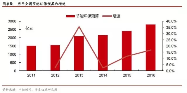 政府是環(huán)保投資的主體,全國每年環(huán)保投資額達(dá)數(shù)千億元,占到同期GDP的1%以上,政府環(huán)保行業(yè)財(cái)政投資也在不斷增加,2016 年環(huán)保行業(yè)財(cái)政預(yù)算支出達(dá)2932億元,并且實(shí)際支出大于預(yù)算。