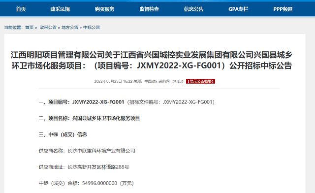 原標(biāo)題:江西明陽(yáng)項(xiàng)目管理有限公司關(guān)于江西省興國(guó)城控實(shí)業(yè)發(fā)展集團(tuán)有限公司興國(guó)縣城鄉(xiāng)環(huán)衛(wèi)市場(chǎng)化服務(wù)項(xiàng)目:(項(xiàng)目編號(hào):JXMY2022-XG-FG001)公開招標(biāo)中標(biāo)公告