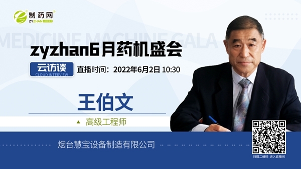 6月2日,zyzhan 6月藥機(jī)盛會(huì)精彩繼續(xù)!上午10:30 ,煙臺(tái)慧寶設(shè)備制造有限公司(以下簡(jiǎn)稱:煙臺(tái)慧寶)高級(jí)工程師王伯文先生將做客zyzhan 6月藥機(jī)盛會(huì)·云訪談 直播間,與廣大觀眾們?cè)诰€對(duì)話,為企業(yè)發(fā)展打開新思路,敬請(qǐng)期待!