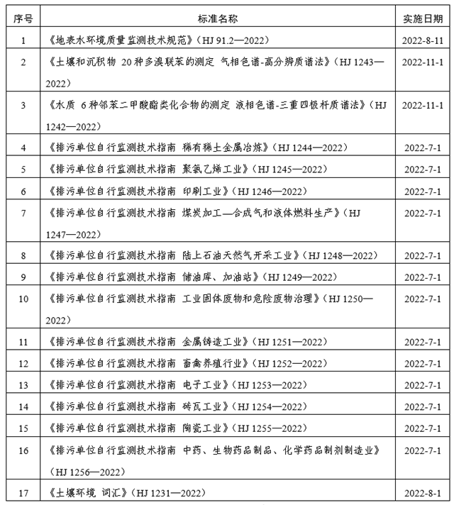 生態(tài)環(huán)境部5月發(fā)布17項(xiàng)國(guó)家生態(tài)環(huán)境標(biāo)準(zhǔn),詳見(jiàn)表1。
