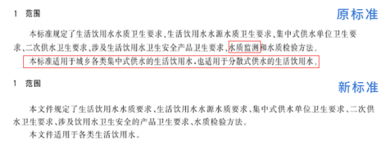 新標準除前言和附錄A外,主體內容由原標準的10個部分改為9個,刪除了原標準中對“水質監(jiān)測”的要求。具體來看,范圍上,新標準刪除了水質監(jiān)測的要求,表述也更加明確。