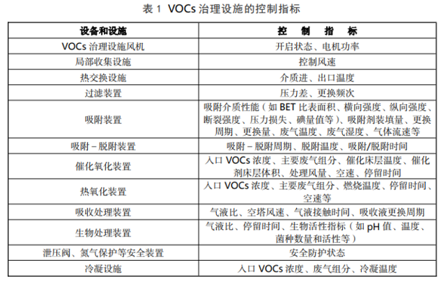 5.2.1 排污單位應根據(jù)生態(tài)環(huán)境保護要求以及相關(guān)的技術(shù)文件資料,在操作規(guī)程中設定VOCs 治理設施正常運行的控制指標,包括但不限于表 1 所列內(nèi)容