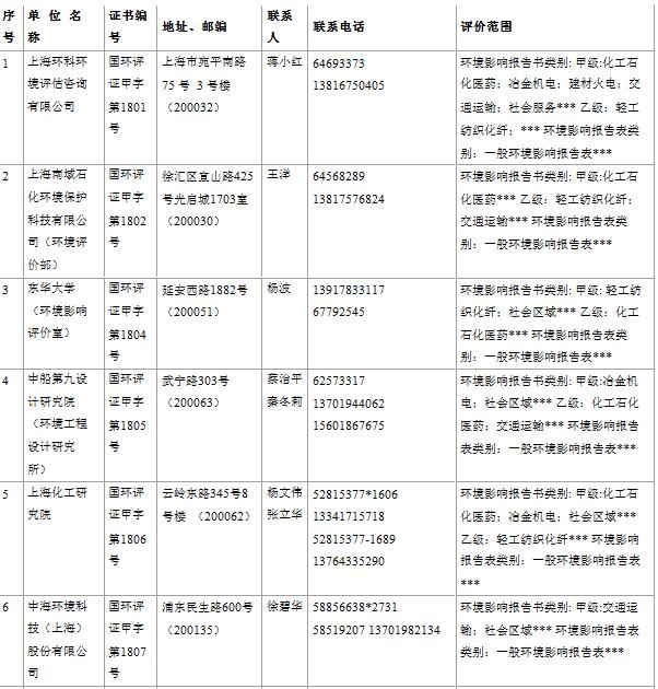 上海市建設(shè)項(xiàng)目環(huán)境影響評(píng)價(jià)單位一覽表(甲級(jí))(2017年2月更新)