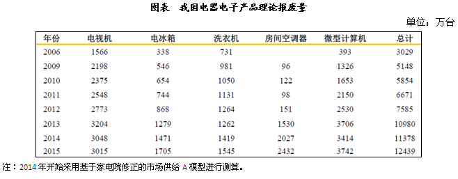 我國電子廢棄物報(bào)廢量規(guī)模