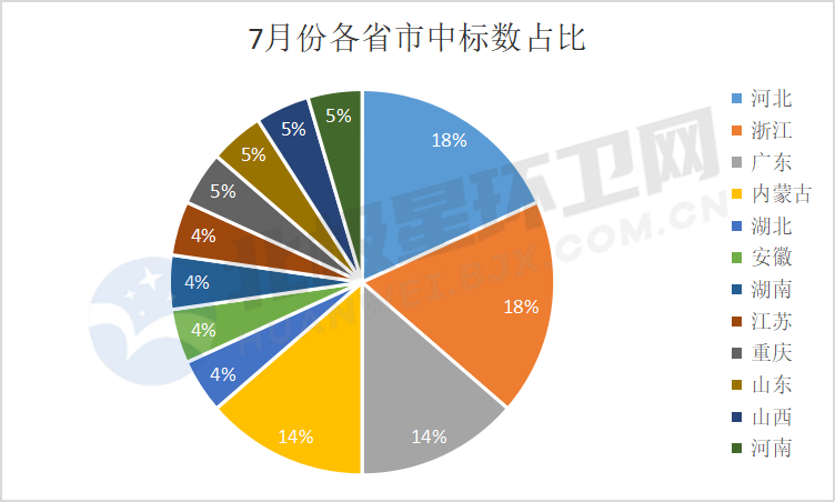 而內蒙古市場令人稍感驚喜,7月爆出多個億級環(huán)衛(wèi)項目,成交總額約13億元。