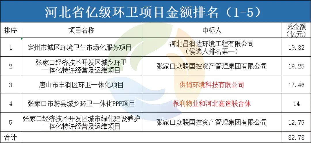 8月8日,超19億元的定州市城區(qū)環(huán)境衛(wèi)生市場化服務(wù)項(xiàng)目公布中標(biāo)候選人公示,河北昌潤達(dá)環(huán)境工程有限公司排名第一;8月9日,約5.5億元三河市城鄉(xiāng)環(huán)衛(wèi)一體化項(xiàng)目又被北京環(huán)境有限公司和北京首創(chuàng)環(huán)境投資有限公司攜手?jǐn)孬@。至此,河北省今年已開標(biāo)的億級環(huán)衛(wèi)項(xiàng)目總金額已超119億元,加上在招標(biāo)項(xiàng)目,河北省今年環(huán)衛(wèi)項(xiàng)目的釋放量已超130億元!不僅如此,進(jìn)入2022年之后,河北省在生活垃圾末端處置方面的發(fā)展也較為迅速,主要體現(xiàn)在生活垃圾焚燒項(xiàng)目、建筑垃圾資源化利用項(xiàng)目等方面。而這一切的“大爆發(fā)”,和地方“十四五”時(shí)期各項(xiàng)規(guī)劃及相關(guān)政策有密切聯(lián)系??梢源竽懙仡A(yù)測,未來5年,河北將是環(huán)衛(wèi)企業(yè)競相爭奪的“圣地”。項(xiàng)目釋放量突破130億,國資控股企業(yè)大放異彩