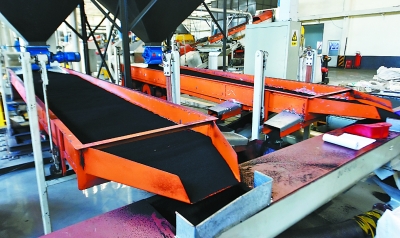 劉晶介紹,眼前的生產(chǎn)線(xiàn)為膠粉常溫破碎生產(chǎn)線(xiàn),由口圈機(jī)、破碎機(jī)、破膠機(jī)、破膠機(jī)輔機(jī)和磁選機(jī)等幾個(gè)部分組成,生產(chǎn)線(xiàn)“吃進(jìn)去”輪胎之后首先由口圈機(jī)分離出口圈,然后整個(gè)輪胎進(jìn)入破碎機(jī)被連續(xù)粉碎,再經(jīng)由破膠機(jī)及輔機(jī)篩分成膠粉,其中,輪胎中的廢鋼絲被磁選機(jī)“吸”出來(lái)。