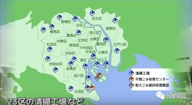 可燃垃圾會(huì)被垃圾車(chē)運(yùn)送到處理工廠進(jìn)行處理,上圖就是整個(gè)東京都的清掃工廠的分布圖。