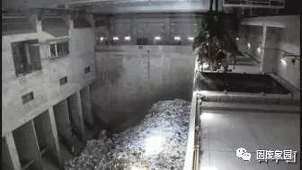 稱(chēng)完重量的垃圾車(chē)來(lái)到卸貨中心按順序把垃圾倒入垃圾處理坑。