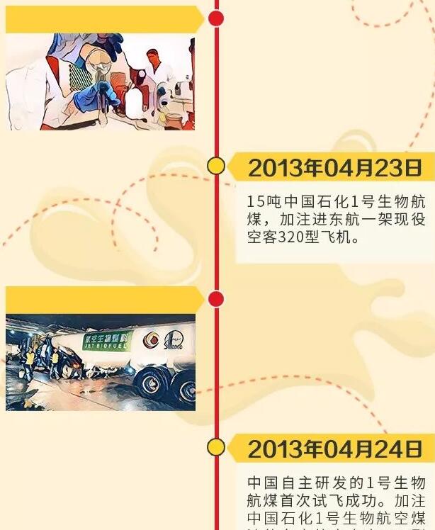 早在2006年,中國石化就開始啟動生物航煤研發(fā)工作啦。2009年,中國石化成功開發(fā)出具有自主知識產(chǎn)權(quán)的生物航煤生產(chǎn)技術(shù)。在此基礎(chǔ)上,2011年9月,中國石化鎮(zhèn)海煉化在下屬生產(chǎn)基地改造建成一套生物航空煤油工業(yè)示范裝置及調(diào)和設(shè)施。2011年12月,該裝置首次生產(chǎn)出合格生物航煤。2013年4月24日,中國石化1號生物航煤在上海虹橋機場由東航成功完成技術(shù)試飛,中國成為繼美國、法國、芬蘭之后第四個擁有生物航煤自主研發(fā)生產(chǎn)技術(shù)的國家。2015年3月21日,中國石化1號生物航煤由海航執(zhí)飛上海至北京首次商業(yè)飛行成功。