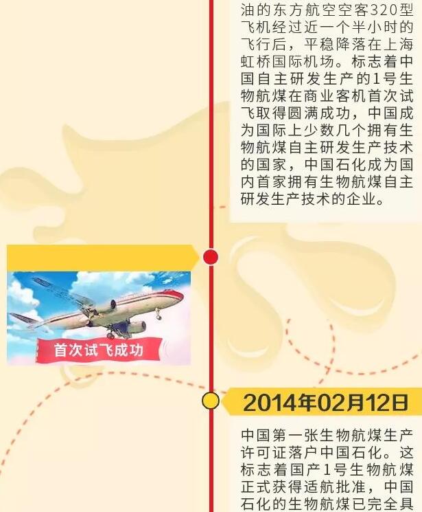 2013年4月24日,中國石化1號生物航煤在上海虹橋機場成功試飛。專家組歷時兩年最終審定認為,中國石化1號生物航煤生產(chǎn)質(zhì)量穩(wěn)定,性能滿足實際使用要求,通過了適航審定程序和指標(biāo)要求,具備商業(yè)化應(yīng)用條件,可以頒發(fā)適航許可證書。