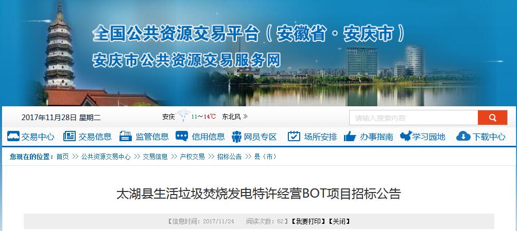 從安徽省安慶市公共資源交易平臺(tái)獲悉,近日發(fā)布了太湖縣生活垃圾焚燒發(fā)電特許經(jīng)營(yíng)BOT項(xiàng)目招標(biāo)公告 ,具體公告內(nèi)容如下: