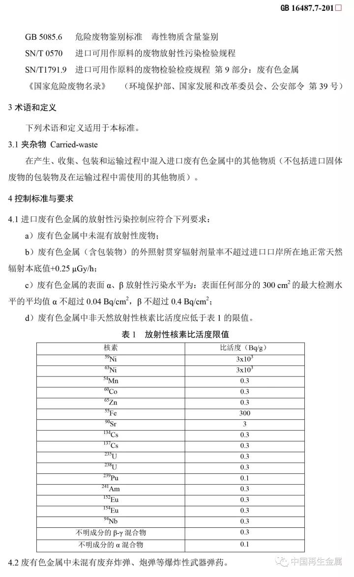 本標(biāo)準(zhǔn)是進(jìn)口固體廢物環(huán)境保護(hù)系列控制標(biāo)準(zhǔn)之一,適用于進(jìn)口可用作原料的固體廢物目錄中有關(guān)廢有色金屬的進(jìn)口管理。