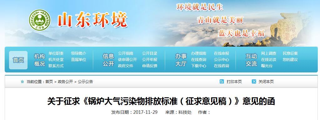 為加強(qiáng)我省鍋爐大氣污染防治,促進(jìn)全省大氣環(huán)境質(zhì)量持續(xù)改善,根據(jù)國(guó)家和我省關(guān)于強(qiáng)制性標(biāo)準(zhǔn)整合精簡(jiǎn)工作的要求,我廳組織對(duì)《山東省鍋爐大氣污染物排放標(biāo)準(zhǔn)》(DB37/2374—2013)進(jìn)行了修訂,現(xiàn)已完成標(biāo)準(zhǔn)文本征求意見稿。根據(jù)國(guó)家和我省環(huán)境保護(hù)標(biāo)準(zhǔn)制修訂工作有關(guān)規(guī)定,現(xiàn)將標(biāo)準(zhǔn)文本征求意見稿和修訂說(shuō)明發(fā)給你們,請(qǐng)研究并提出書面修改意見,于2017年12月10日前反饋我廳,逾期視為無(wú)意見。