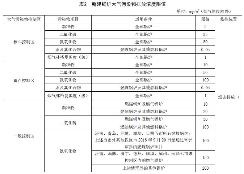 4.2.42019年1月1日起,現(xiàn)有燃煤鍋爐按所在控制區(qū)執(zhí)行表2中的排放濃度限值。