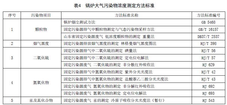 5.1.6對(duì)鍋爐大氣污染物排放濃度的測(cè)定采用表4所列的方法標(biāo)準(zhǔn)。