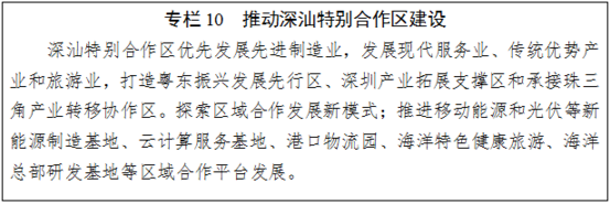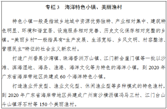 城市發(fā)展。積極落實粵港澳大灣區(qū)發(fā)展戰(zhàn)略,以改善宜居、宜業(yè)、宜游為出發(fā)點和落腳點,創(chuàng)新機制體制,把粵港澳大灣區(qū)建成經(jīng)濟發(fā)達、生態(tài)文明,綠色、宜居、宜業(yè)、宜游的世界級城市群。積極推進深圳、廣州全球海洋中心城市建設(shè)以及珠海區(qū)域性海洋中心城市建設(shè)。