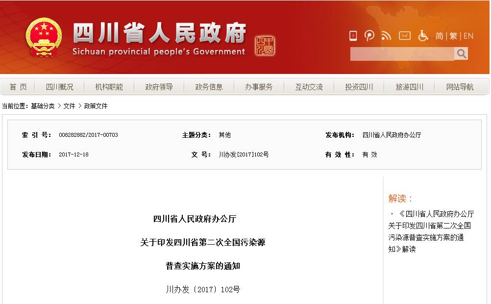 四川省人民政府辦公廳關(guān)于印發(fā)四川省第二次全國污染源普查實施方案的通知