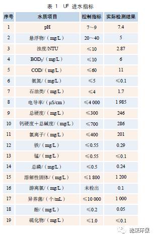 2.2.1 進(jìn)水與產(chǎn)水控制指標(biāo):UF 膜進(jìn)水控制指標(biāo)見(jiàn)表 1,RO 膜產(chǎn)水控制指標(biāo)見(jiàn)表 2。