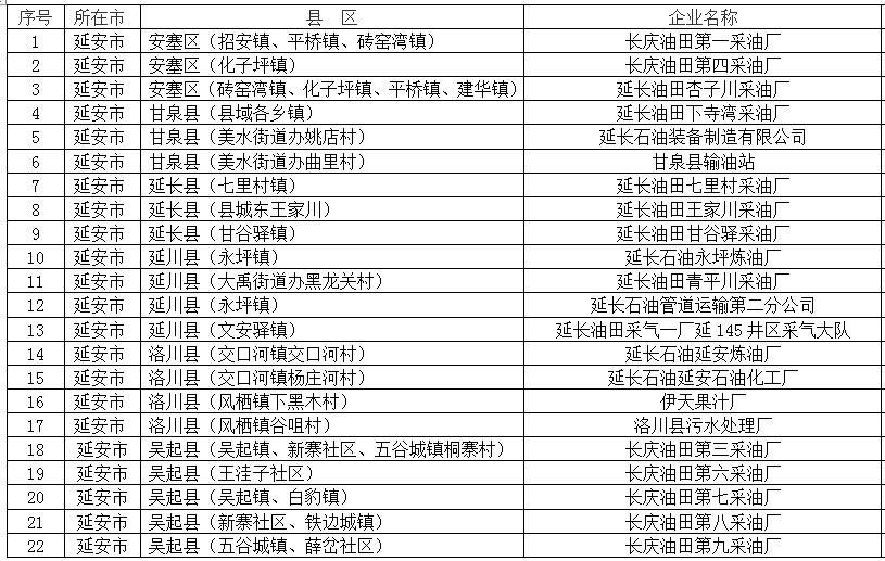 延安市土壤環(huán)境重點監(jiān)管企業(yè)名單