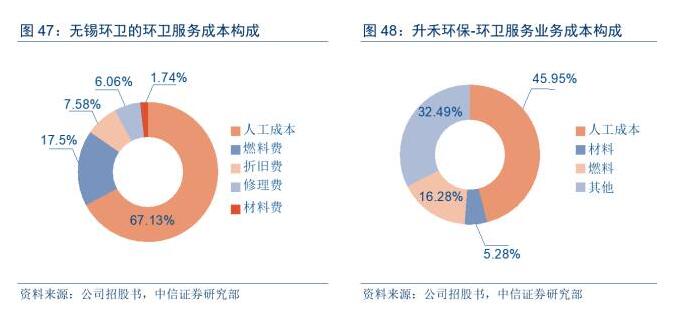 從成本構(gòu)成看,環(huán)衛(wèi)服務(wù)項目成本主要由環(huán)衛(wèi)職工薪酬、保險等人工成本、環(huán)衛(wèi)車輛等環(huán)衛(wèi)設(shè)備燃料成本、設(shè)備折舊、設(shè)備維修費(fèi)等部分組成,勞動力高度密集導(dǎo)致人工成本占比最大,目前普遍占到環(huán)衛(wèi)運(yùn)營成本的60%~70%。