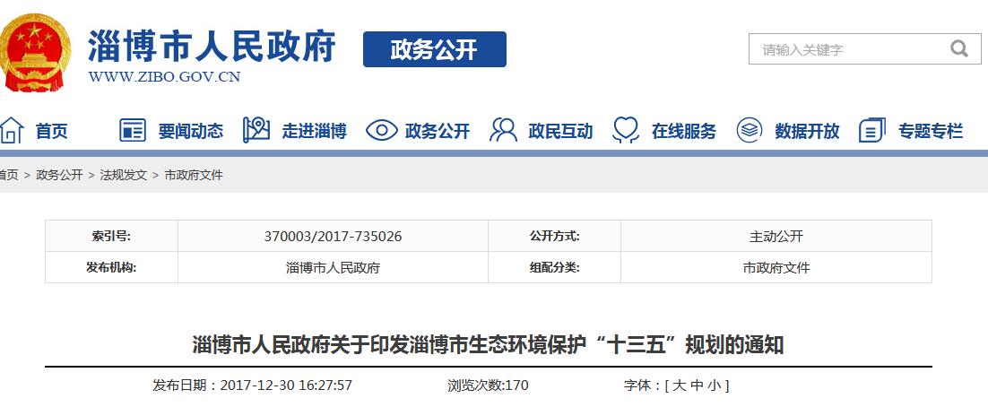 淄博市生態(tài)環(huán)境保護“十三五”規(guī)劃