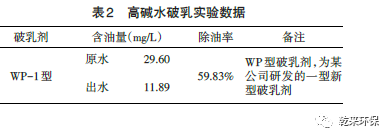 結(jié)論:由數(shù)據(jù)可知,五種破乳劑中WP-3及WP-4型破乳效果較好,結(jié)合破乳劑成本考慮,最終選擇WP-4型破乳劑為最優(yōu)選擇。WP-4型破乳劑用于廢水后,其包裹油滴形成的絮凝物難以迅速下沉,建議選擇配套氣浮類去油裝置。
