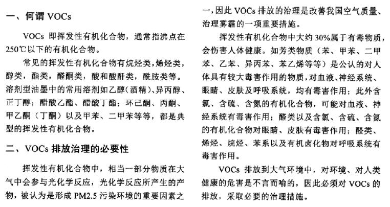 當(dāng)前塑料包裝材料的眾多生產(chǎn)工藝,基本上都屬于清潔化生產(chǎn),生產(chǎn)過程中不存VOCs等有毒有害物質(zhì)的產(chǎn)生與排放的問題,但塑料包裝材料中的一個重要分支一一塑料軟包裝材料,生產(chǎn)過程中大量應(yīng)用溶劑型膠黏劑的干法復(fù)合工藝和溶劑型油墨的凹版印刷工藝,生產(chǎn)過程中都不可避免地要排放出大量的有機溶劑(溶劑型油墨和溶劑型膠黏劑中的溶劑必須揮發(fā)、排放到大氣中,復(fù)合、印刷工序才能完成),有機溶劑給車間及周邊環(huán)境,造成嚴(yán)重的污染,因此在我國大氣環(huán)境污染的整治中,包裝印刷行業(yè)被環(huán)保部列為VOCs排放的重點整治的行業(yè)之一。