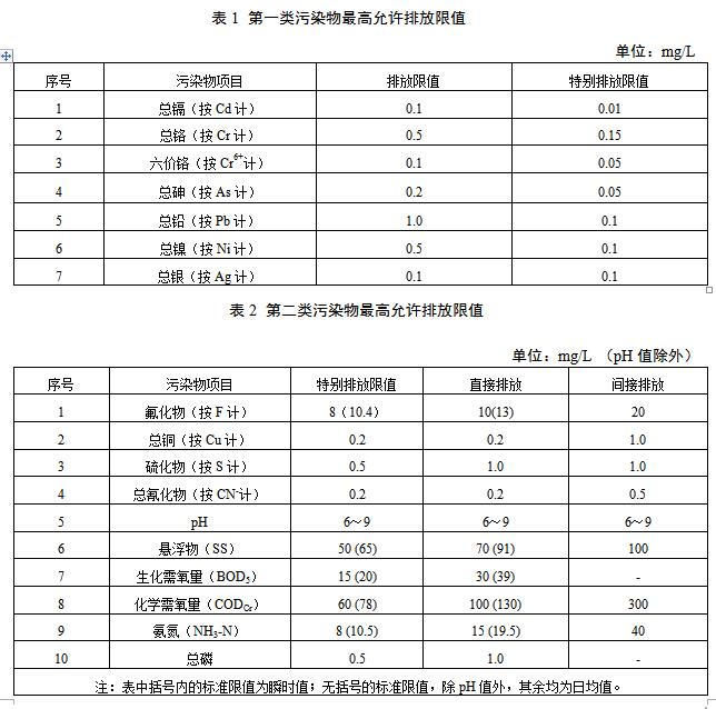 半導(dǎo)體企業(yè)的水污染物排放執(zhí)行表1和表2的規(guī)定。