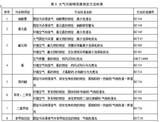 5.3.2對(duì)企業(yè)排放大氣污染物濃度的測(cè)定采用表6所列的方法標(biāo)準(zhǔn)。