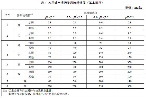 ——規(guī)定了農(nóng)用地土壤中鎘、汞、砷、鉛、鉻的風(fēng)險管制值;