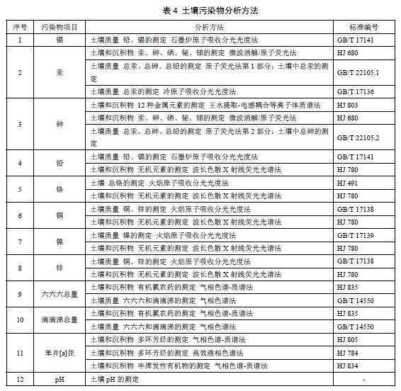 7.2.1土壤污染物分析方法按表4執(zhí)行。