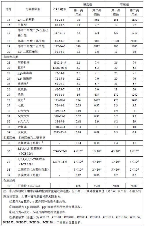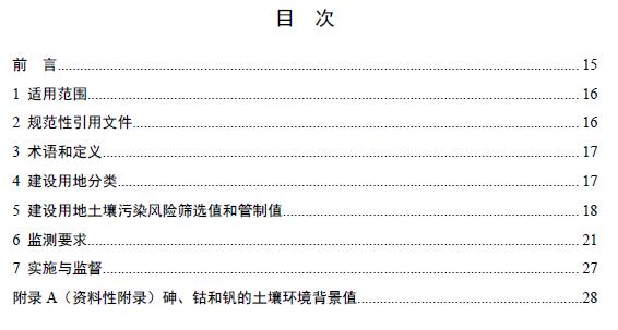 本標(biāo)準(zhǔn)規(guī)定了保護人體健康的建設(shè)用地土壤污染風(fēng)險篩選值和管制值,以及監(jiān)測、實施與監(jiān)督要求。