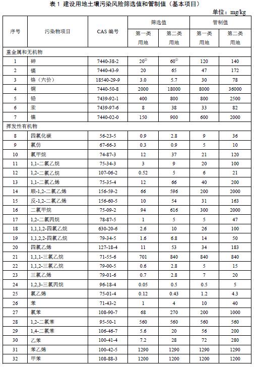 土壤環(huán)境質(zhì)量建設(shè)用地土壤污染風(fēng)險管控標(biāo)準(zhǔn)