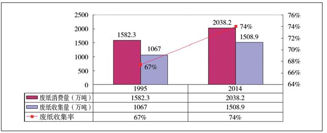 圖41995~2014年德國廢紙收集利用率對比