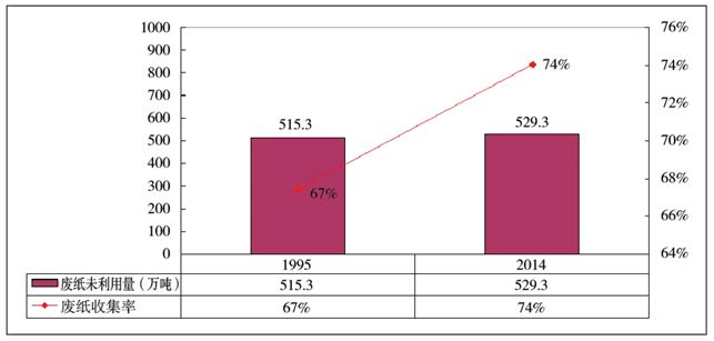 圖51995~2014年德國廢紙未利用量對比