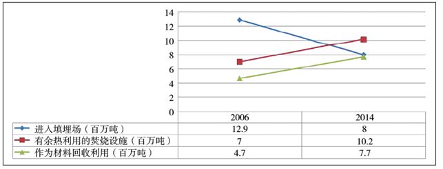 圖82006~2014年歐盟廢塑料回收利用變化
