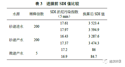 結(jié)果發(fā)現(xiàn),首次清洗后的浸泡液顏色較深,連續(xù)重復(fù)清洗顏色逐次變淡,表明現(xiàn)時一次清洗未能把污染物完全去除。說明前處理不足,進水有機膠體含量太高。進一步使用稀釋調(diào)整后的SDI 法可以對前處理效果進行量化。
