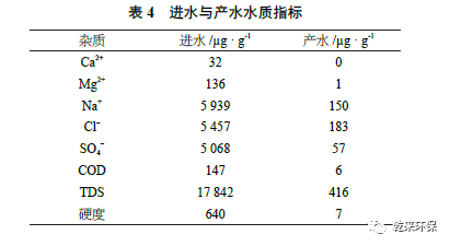 這兩項設(shè)計可以使廢水在不除硬的前提下進行濃縮。按現(xiàn)有的實踐經(jīng)驗,震動膜濃液TDS 濃度可達100 000 μg/g。濃縮比可以達到90%,即可減少蒸發(fā)量達90%。產(chǎn)水TDS 濃度約為100mg ˙ L-1 以下,完全滿足回用要求。